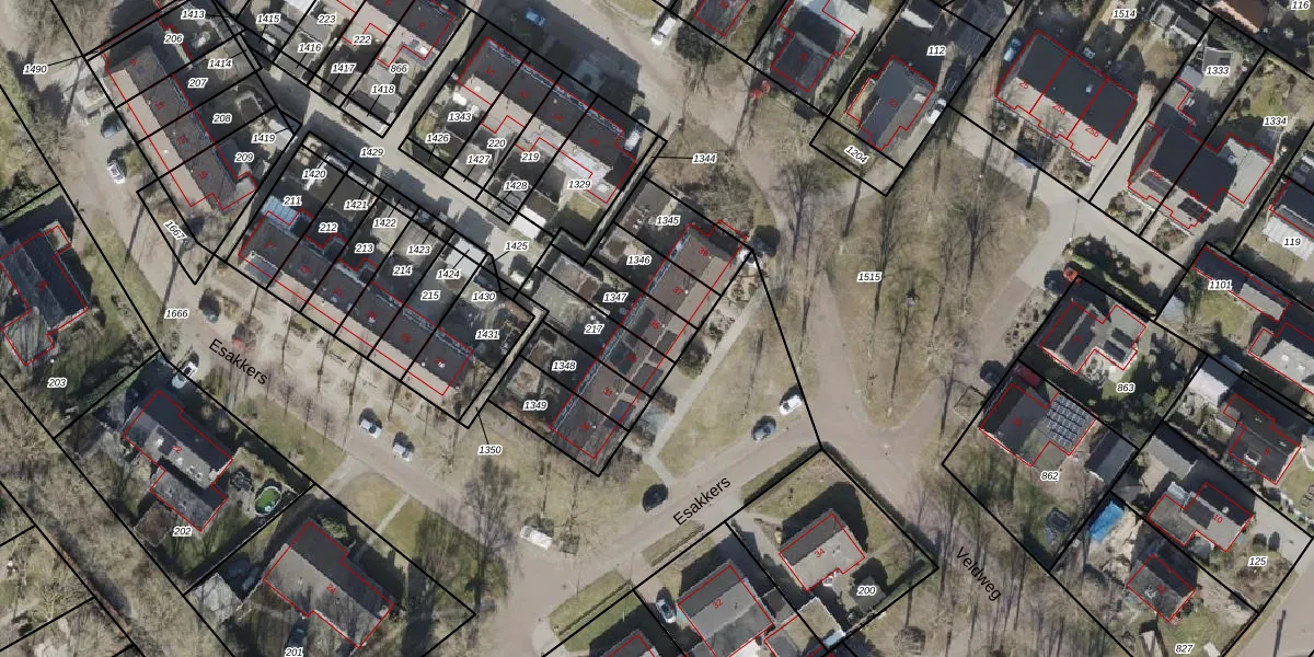 Het perceel waarop Esakkers 35 staat heeft een oppervlakte van 150 m². Dit is een middelgroot perceel. De perceeloppervlakte wordt geregistreerd door het Kadaster. Gedetailleerde informatie over de maten van dit perceel kunt u vinden in het rapport Kadastrale kaart met maatvoering van Esakkers 35.