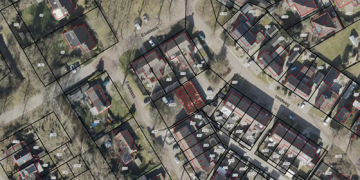 Esakkers 9-G-1 is gelegen op kadastraal perceel ALO00Z1489. Deze kadastrale aanduiding is uniek en wordt gebruikt door het Kadaster om eigendomsrechten en andere zakelijke rechten vast te leggen. Het perceel maakt onderdeel uit van de kadastrale gemeente Anloo.