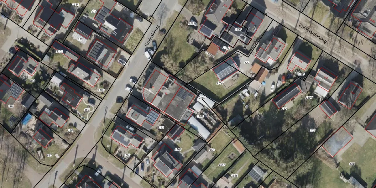 Kruisakkers 1 is gelegen op kadastraal perceel ALO00Z1768. Deze kadastrale aanduiding is uniek en wordt gebruikt door het Kadaster om eigendomsrechten en andere zakelijke rechten vast te leggen. Het perceel maakt onderdeel uit van de kadastrale gemeente Anloo.