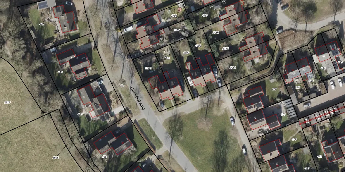 Het perceel waarop Ronkelskamp 87 staat heeft een oppervlakte van 343 m². Dit is een groot perceel. De perceeloppervlakte wordt geregistreerd door het Kadaster. Gedetailleerde informatie over de maten van dit perceel kunt u vinden in het rapport Kadastrale kaart met maatvoering van Ronkelskamp 87.