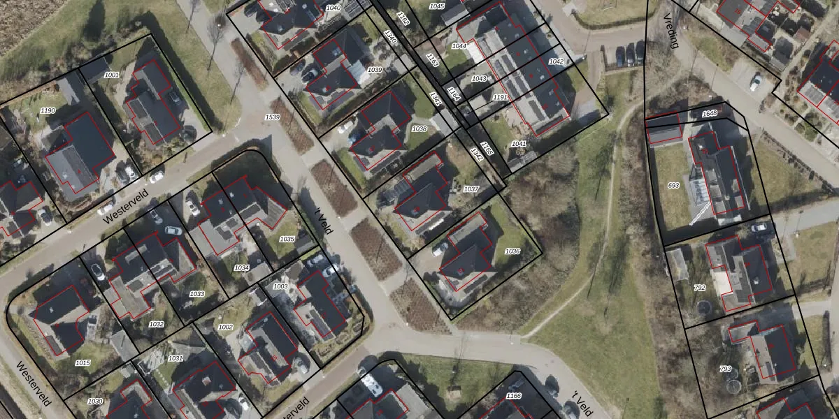 't Veld 49 is gelegen op kadastraal perceel ALO00U1037. Deze kadastrale aanduiding is uniek en wordt gebruikt door het Kadaster om eigendomsrechten en andere zakelijke rechten vast te leggen. Het perceel maakt onderdeel uit van de kadastrale gemeente Anloo.