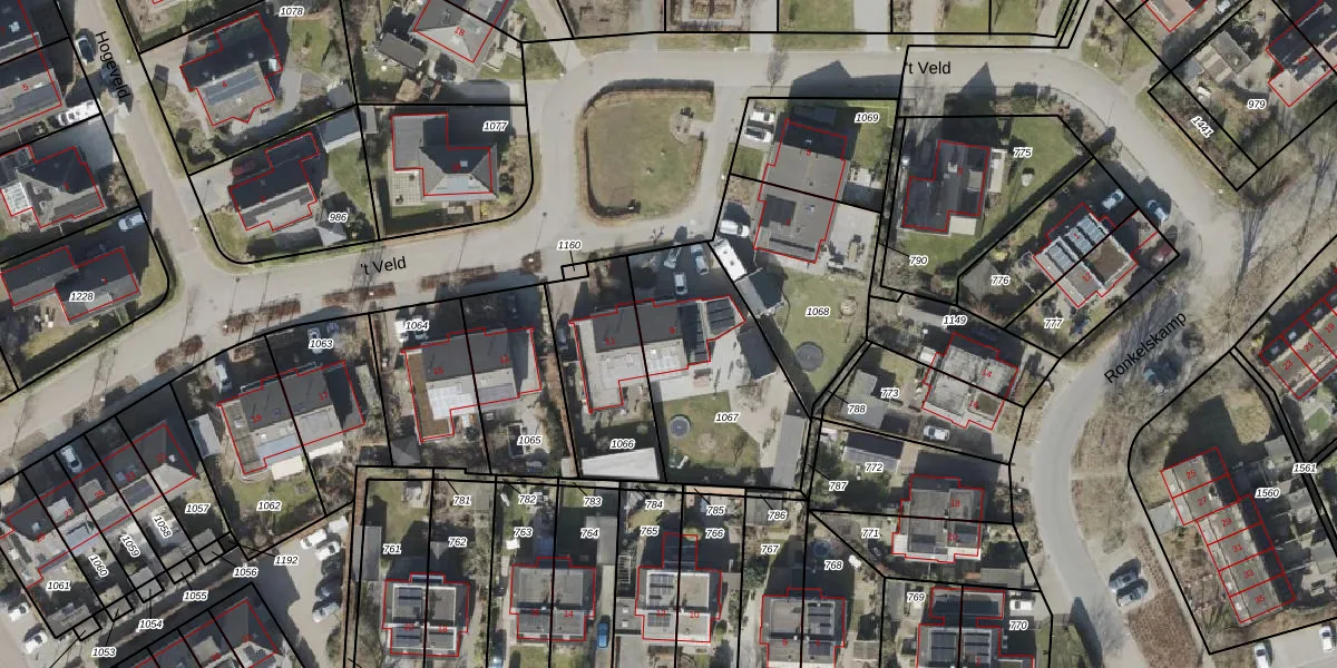 Gebruik de zoekbalk of klik op een perceel voor informatie over de adressen binnen dit perceel.
