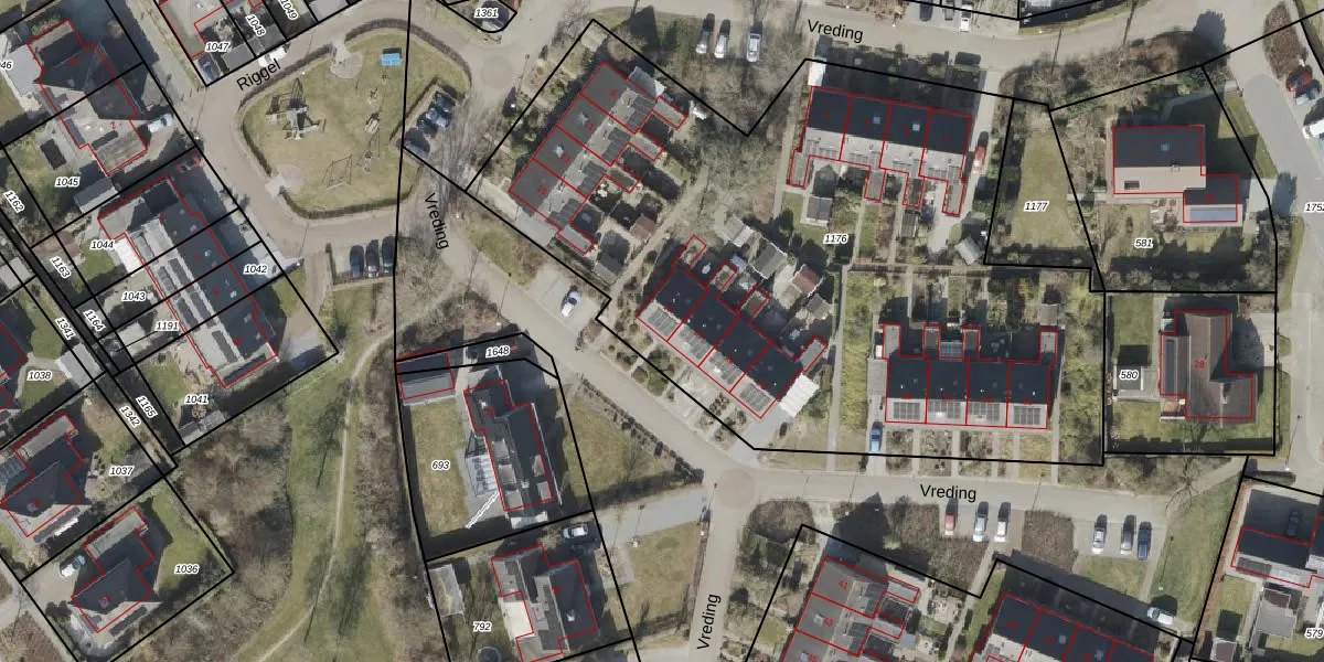 Het perceel waarop Vreding 17 staat heeft een oppervlakte van 4036 m². Dit is een zeer groot perceel. De perceeloppervlakte wordt geregistreerd door het Kadaster. Gedetailleerde informatie over de maten van dit perceel kunt u vinden in het rapport Kadastrale kaart met maatvoering van Vreding 17.