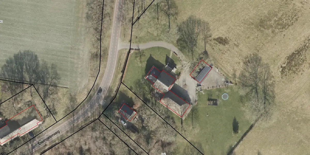 Het perceel waarop Dwingelerweg 22 staat heeft een oppervlakte van 4,8 ha. Dit is een zeer groot perceel. De perceeloppervlakte wordt geregistreerd door het Kadaster. Gedetailleerde informatie over de maten van dit perceel kunt u vinden in het rapport Kadastrale kaart met maatvoering van Dwingelerweg 22.