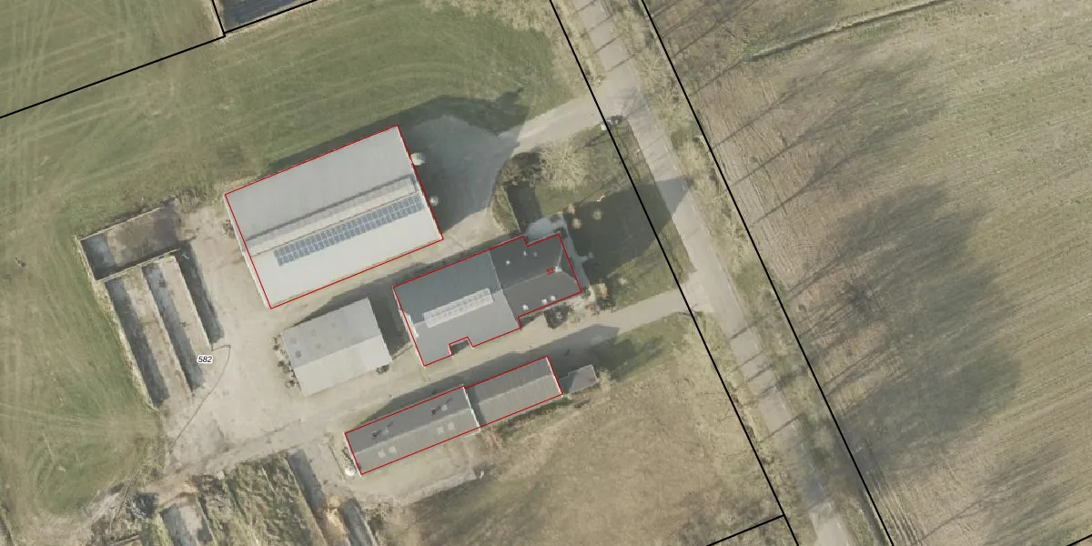 Het adres ligt op het perceel RNN02-I-582, dat zich in de kadastrale gemeente Ruinen bevindt. De oppervlakte van het perceel is 1,6 ha. Dat is groter dan gemiddeld in Ruinen, waar de gemiddelde perceeloppervlakte op 1,2 ha ligt. Het grootste perceel in de kadastrale gemeente is 2,67 km². Het kleinste perceel heeft een oppervlakte van 0 m². Er zijn geen andere adressen aanwezig op het perceel. De laatste wijziging in het de Basisregistratie Kadaster (BRK) was op 22-07-2019.