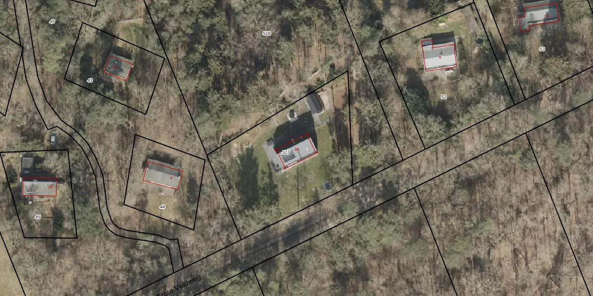 Het perceel waarop Grote Veldweg 4-a staat heeft een oppervlakte van 1587 m². Dit is een zeer groot perceel. De perceeloppervlakte wordt geregistreerd door het Kadaster. Gedetailleerde informatie over de maten van dit perceel kunt u vinden in het rapport Kadastrale kaart met maatvoering van Grote Veldweg 4-a.