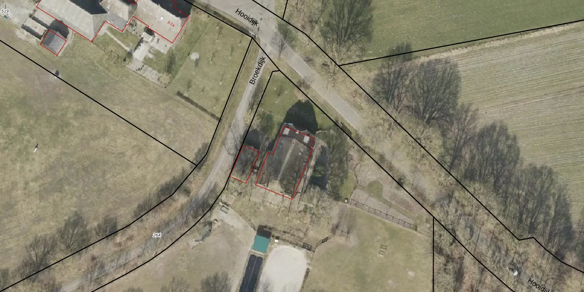 Het perceel waarop Hooidijk 1 staat heeft een oppervlakte van 7256 m². Dit is een zeer groot perceel. De perceeloppervlakte wordt geregistreerd door het Kadaster. Gedetailleerde informatie over de maten van dit perceel kunt u vinden in het rapport Kadastrale kaart met maatvoering van Hooidijk 1.