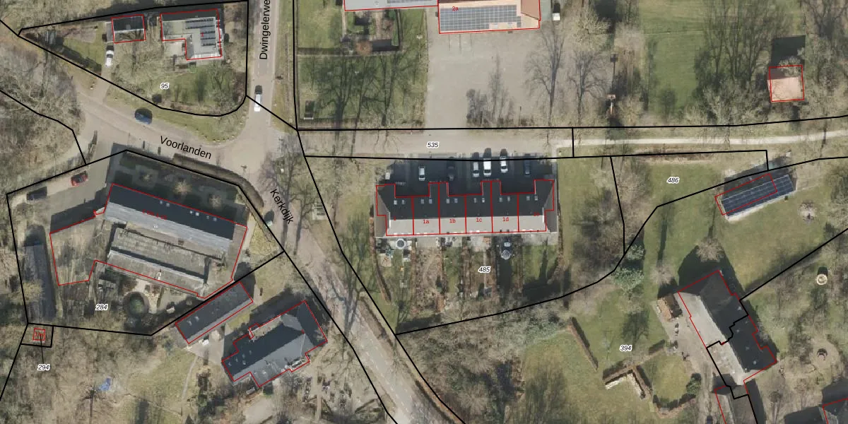 Kerkdijk 1-a is gelegen op kadastraal perceel RNN02I485. Deze kadastrale aanduiding is uniek en wordt gebruikt door het Kadaster om eigendomsrechten en andere zakelijke rechten vast te leggen. Het perceel maakt onderdeel uit van de kadastrale gemeente Ruinen.