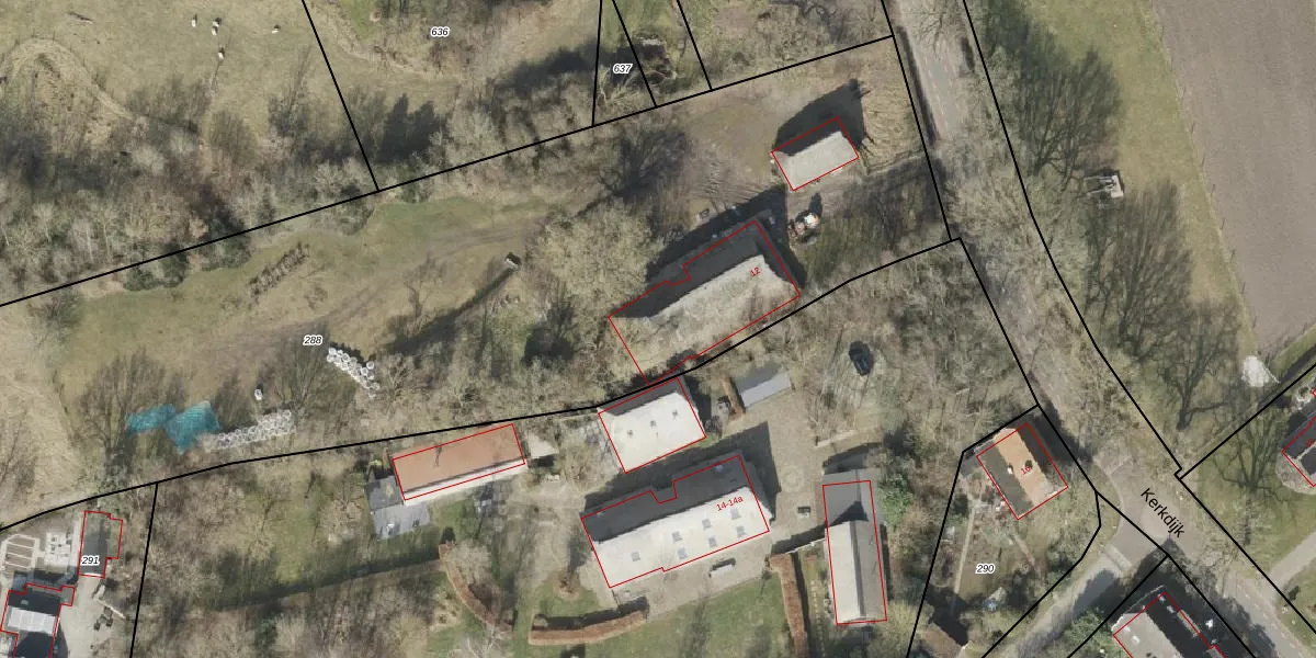 Het perceel waarop Kerkdijk 12 staat heeft een oppervlakte van 5656 m². Dit is een zeer groot perceel. De perceeloppervlakte wordt geregistreerd door het Kadaster. Gedetailleerde informatie over de maten van dit perceel kunt u vinden in het rapport Kadastrale kaart met maatvoering van Kerkdijk 12.