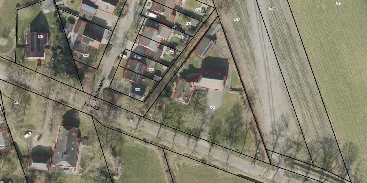 Het perceel waarop Kerkdijk 31 staat heeft een oppervlakte van 2461 m². Dit is een zeer groot perceel. De perceeloppervlakte wordt geregistreerd door het Kadaster. Gedetailleerde informatie over de maten van dit perceel kunt u vinden in het rapport Kadastrale kaart met maatvoering van Kerkdijk 31.