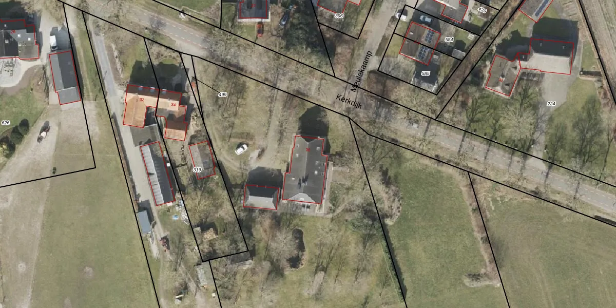 Het perceel waarop Kerkdijk 36 staat heeft een oppervlakte van 1,2 ha. Dit is een zeer groot perceel. De perceeloppervlakte wordt geregistreerd door het Kadaster. Gedetailleerde informatie over de maten van dit perceel kunt u vinden in het rapport Kadastrale kaart met maatvoering van Kerkdijk 36.