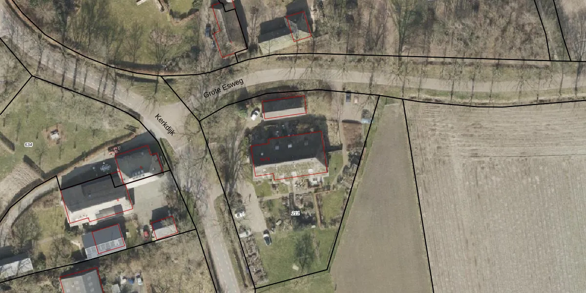 Het perceel waarop Kerkdijk 7-c staat heeft een oppervlakte van 2740 m². Dit is een zeer groot perceel. De perceeloppervlakte wordt geregistreerd door het Kadaster. Gedetailleerde informatie over de maten van dit perceel kunt u vinden in het rapport Kadastrale kaart met maatvoering van Kerkdijk 7-c.