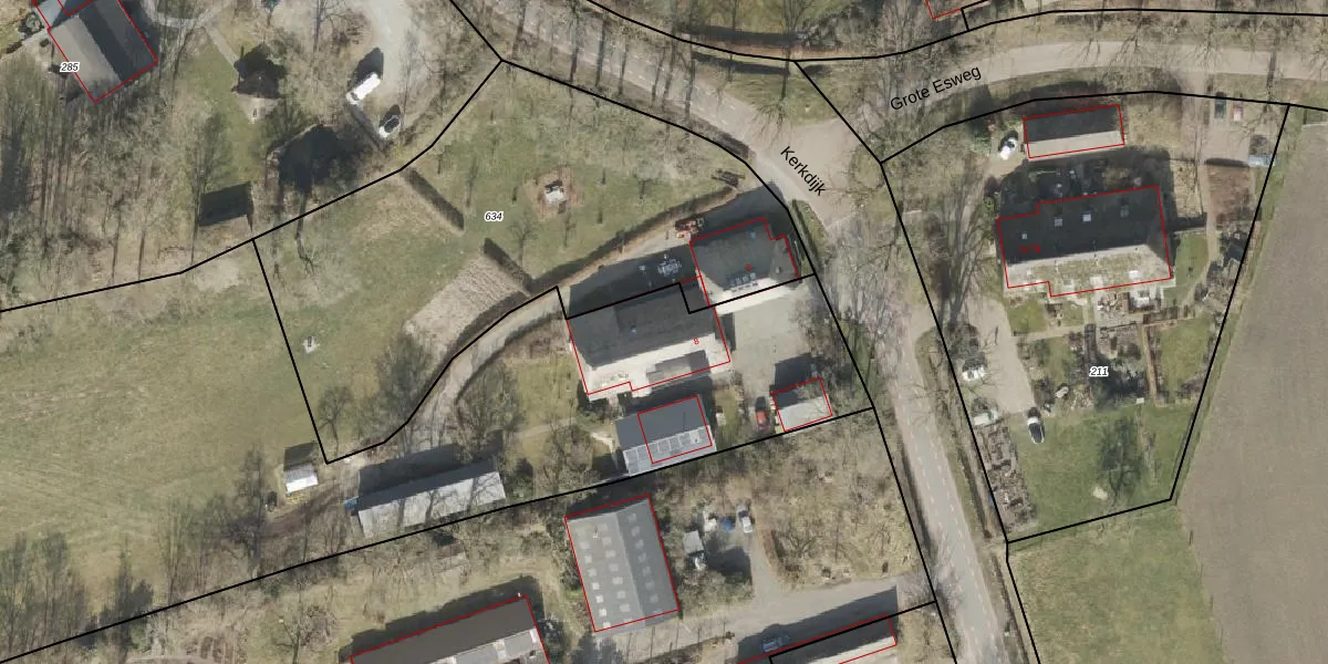 Kerkdijk 8 is gelegen op kadastraal perceel RNN02I635. Deze kadastrale aanduiding is uniek en wordt gebruikt door het Kadaster om eigendomsrechten en andere zakelijke rechten vast te leggen. Het perceel maakt onderdeel uit van de kadastrale gemeente Ruinen.