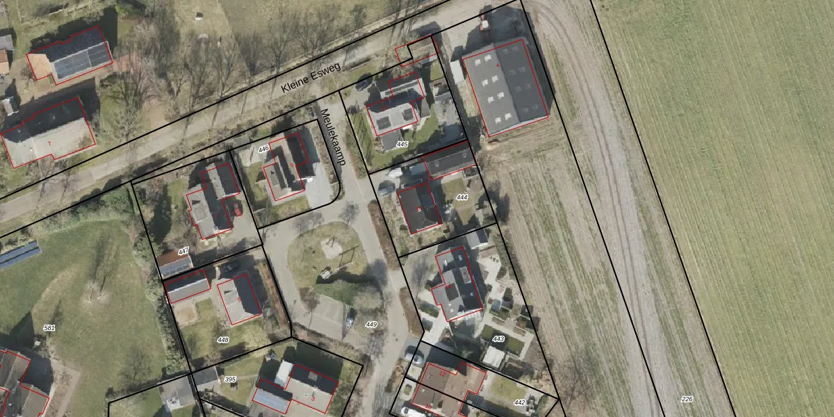 Het perceel waarop Meulekaamp 16 staat heeft een oppervlakte van 536 m². Dit is een groot perceel. De perceeloppervlakte wordt geregistreerd door het Kadaster. Gedetailleerde informatie over de maten van dit perceel kunt u vinden in het rapport Kadastrale kaart met maatvoering van Meulekaamp 16.