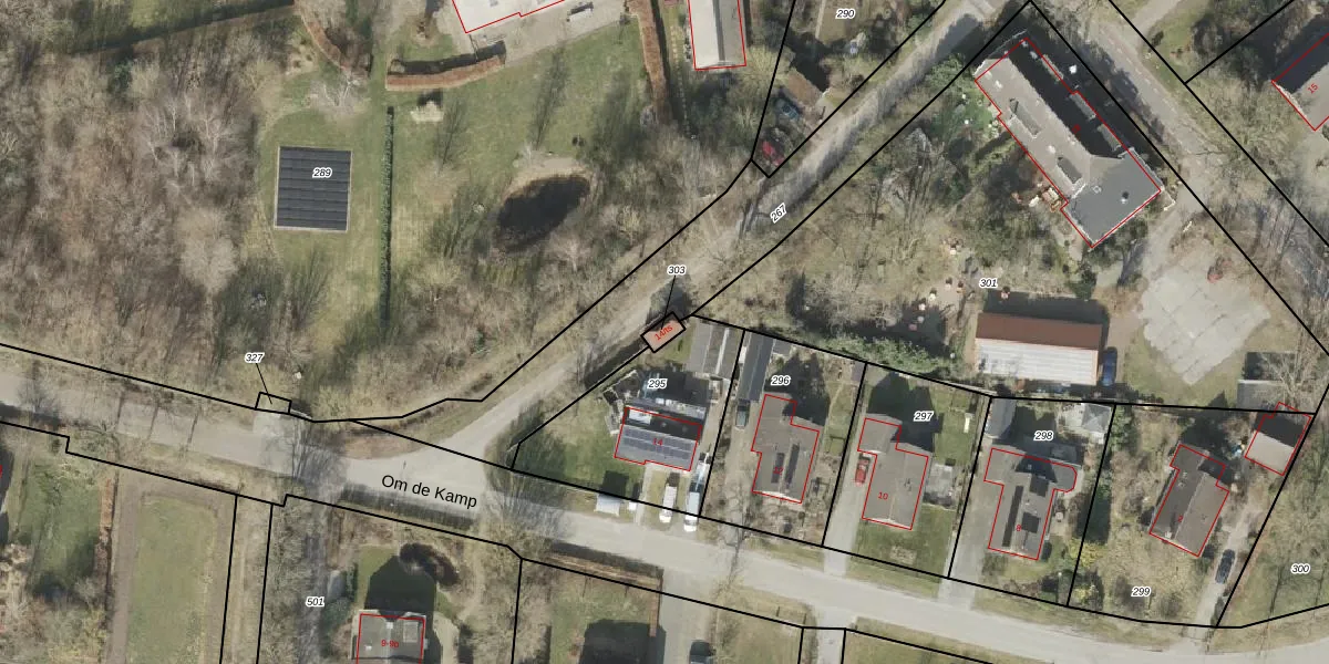 Om de Kamp 14-ts is gelegen op kadastraal perceel RNN02I303. Deze kadastrale aanduiding is uniek en wordt gebruikt door het Kadaster om eigendomsrechten en andere zakelijke rechten vast te leggen. Het perceel maakt onderdeel uit van de kadastrale gemeente Ruinen.