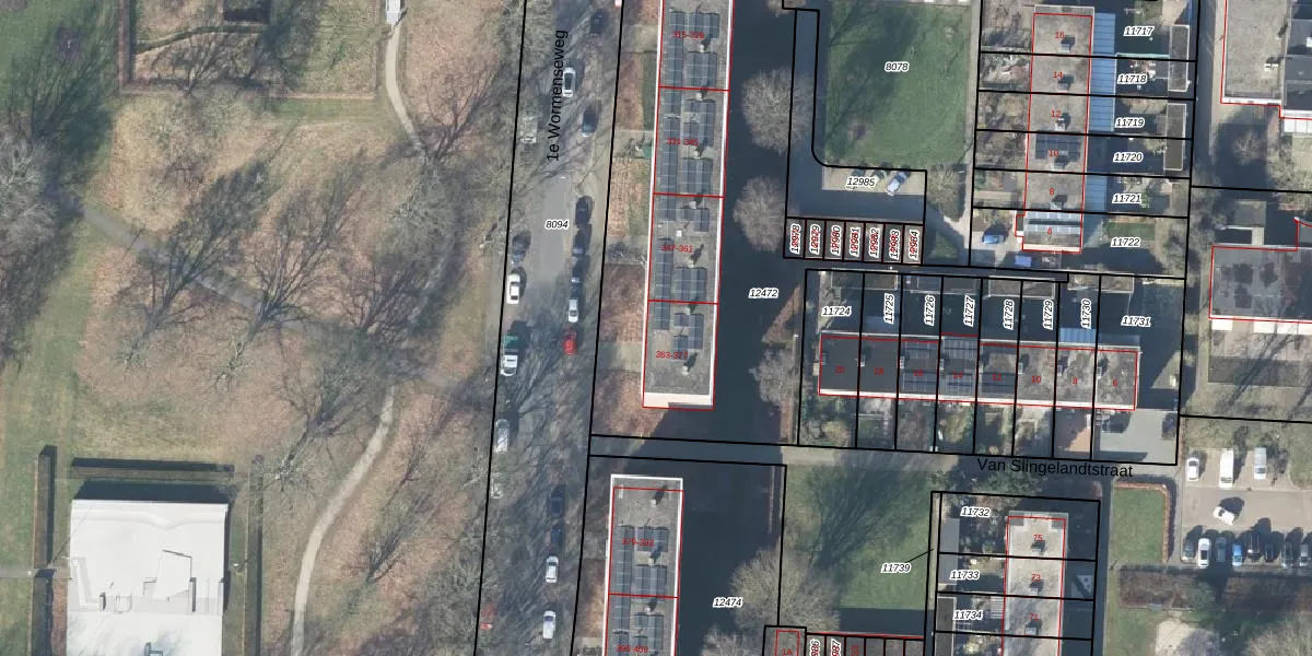 Het perceel waarop 1e Wormenseweg 365 staat heeft een oppervlakte van 2116 m². Dit is een zeer groot perceel. De perceeloppervlakte wordt geregistreerd door het Kadaster. Gedetailleerde informatie over de maten van dit perceel kunt u vinden in het rapport Kadastrale kaart met maatvoering van 1e Wormenseweg 365.