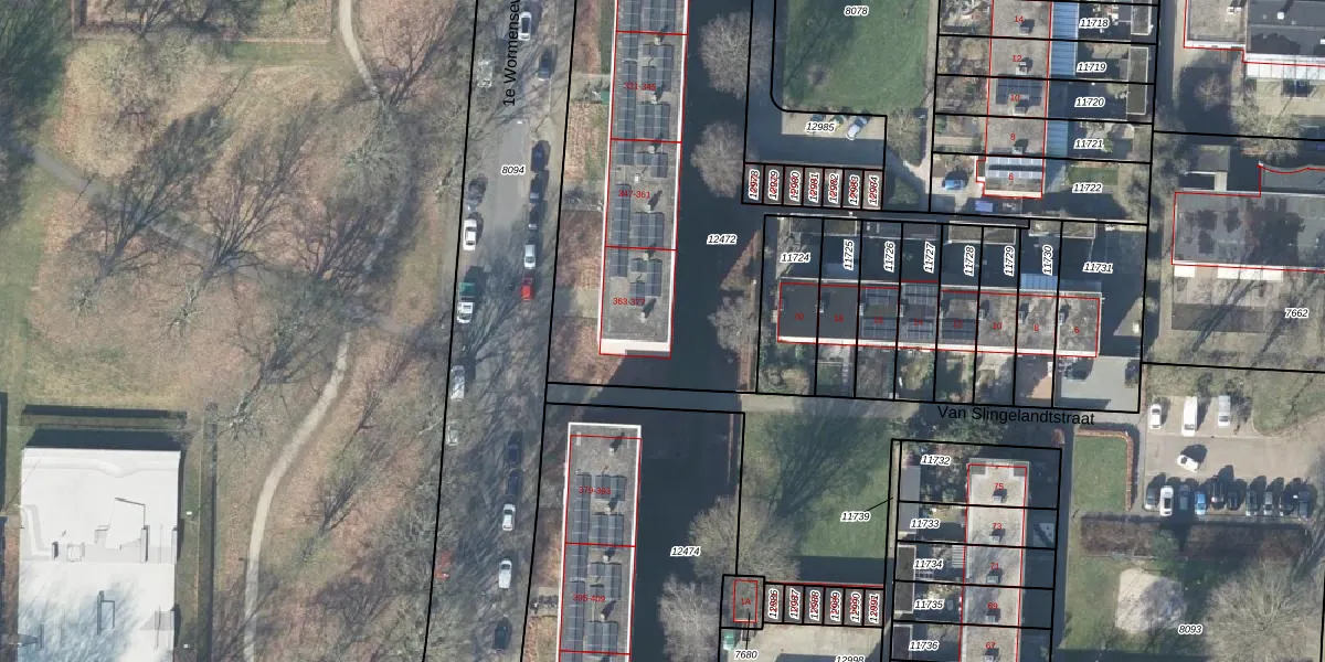 Het perceel waarop 1e Wormenseweg 375 staat heeft een oppervlakte van 2116 m². Dit is een zeer groot perceel. De perceeloppervlakte wordt geregistreerd door het Kadaster. Gedetailleerde informatie over de maten van dit perceel kunt u vinden in het rapport Kadastrale kaart met maatvoering van 1e Wormenseweg 375.