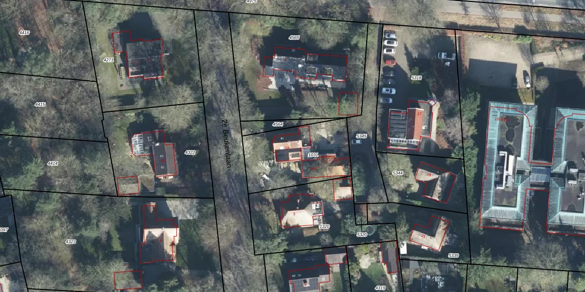 2e Beukenlaan 1-A is gelegen op kadastraal perceel SRN00R1031. Deze kadastrale aanduiding is uniek en wordt gebruikt door het Kadaster om eigendomsrechten en andere zakelijke rechten vast te leggen. Het perceel maakt onderdeel uit van de kadastrale gemeente Hoog Soeren.