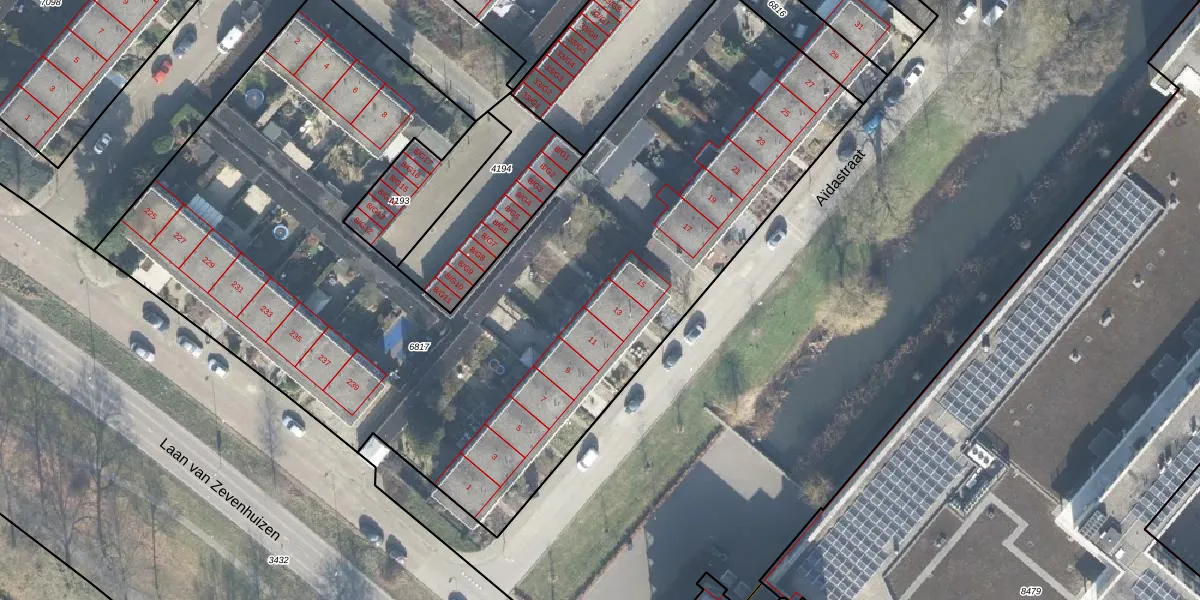 Aïdastraat 13 is gelegen op kadastraal perceel APD01Z6817. Deze kadastrale aanduiding is uniek en wordt gebruikt door het Kadaster om eigendomsrechten en andere zakelijke rechten vast te leggen. Het perceel maakt onderdeel uit van de kadastrale gemeente Apeldoorn.