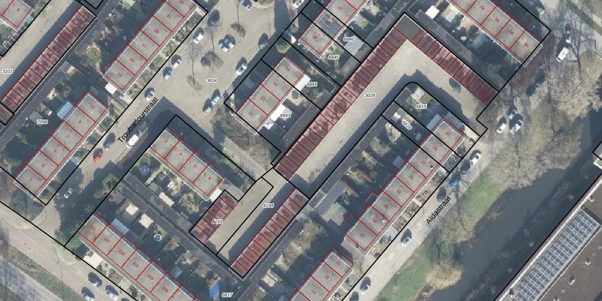 Het perceel waarop Aïdastraat 33-G4 staat heeft een oppervlakte van 1494 m². Dit is een zeer groot perceel. De perceeloppervlakte wordt geregistreerd door het Kadaster. Gedetailleerde informatie over de maten van dit perceel kunt u vinden in het rapport Kadastrale kaart met maatvoering van Aïdastraat 33-G4.