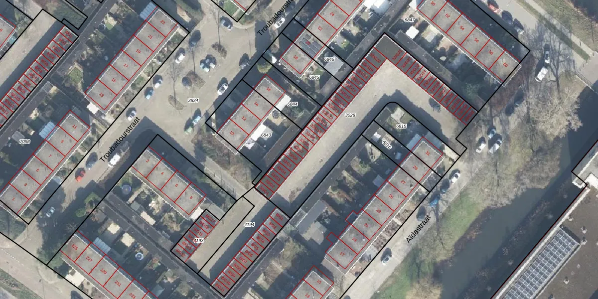 Aïdastraat 33-G7 is gelegen op kadastraal perceel APD01Z3028. Deze kadastrale aanduiding is uniek en wordt gebruikt door het Kadaster om eigendomsrechten en andere zakelijke rechten vast te leggen. Het perceel maakt onderdeel uit van de kadastrale gemeente Apeldoorn.