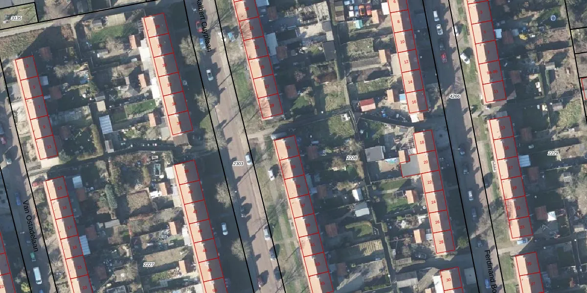 Het perceel waarop Aalbert Cuyplaan 31 staat heeft een oppervlakte van 1,5 ha. Dit is een zeer groot perceel. De perceeloppervlakte wordt geregistreerd door het Kadaster. Gedetailleerde informatie over de maten van dit perceel kunt u vinden in het rapport Kadastrale kaart met maatvoering van Aalbert Cuyplaan 31.
