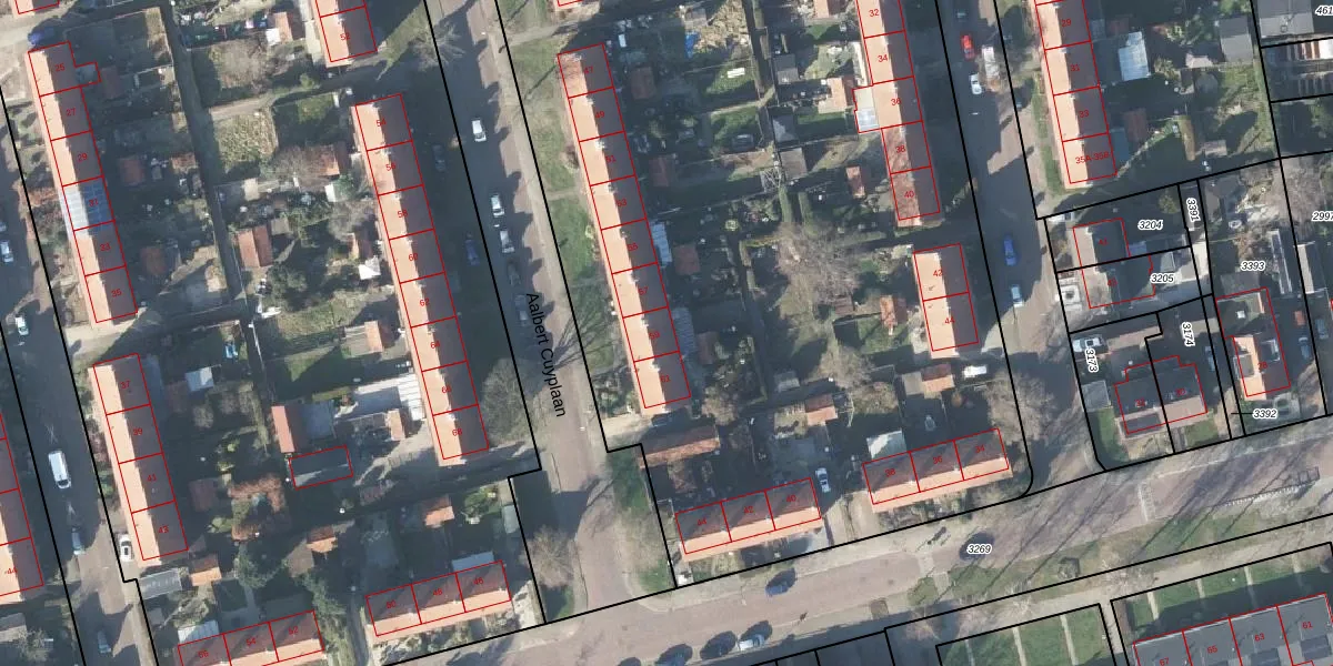 Het perceel waarop Aalbert Cuyplaan 59 staat heeft een oppervlakte van 1,5 ha. Dit is een zeer groot perceel. De perceeloppervlakte wordt geregistreerd door het Kadaster. Gedetailleerde informatie over de maten van dit perceel kunt u vinden in het rapport Kadastrale kaart met maatvoering van Aalbert Cuyplaan 59.