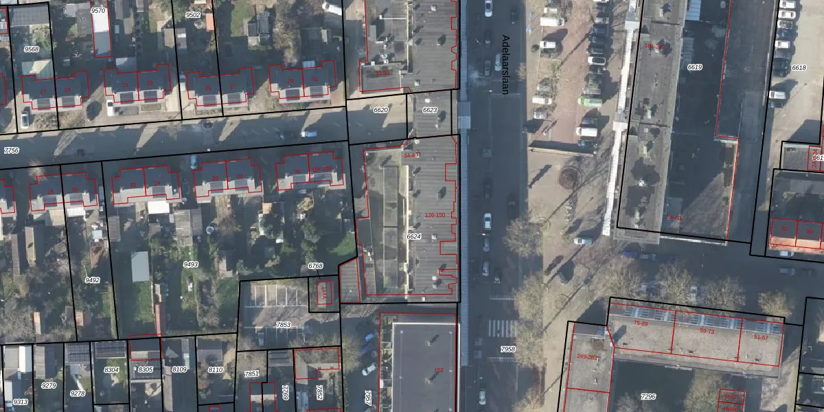 Adelaarslaan 136 is gelegen op kadastraal perceel APD01N6624. Deze kadastrale aanduiding is uniek en wordt gebruikt door het Kadaster om eigendomsrechten en andere zakelijke rechten vast te leggen. Het perceel maakt onderdeel uit van de kadastrale gemeente Apeldoorn.