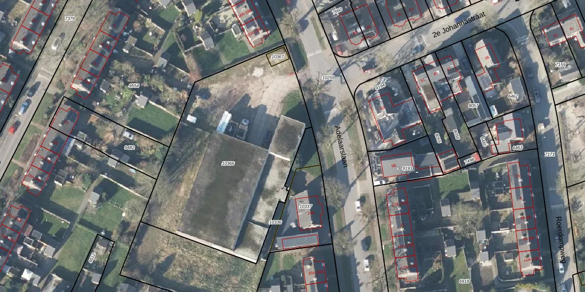 Het perceel waarop Adelaarslaan 22-16 staat heeft een oppervlakte van 2600 m². Dit is een zeer groot perceel. De perceeloppervlakte wordt geregistreerd door het Kadaster. Gedetailleerde informatie over de maten van dit perceel kunt u vinden in het rapport Kadastrale kaart met maatvoering van Adelaarslaan 22-16.