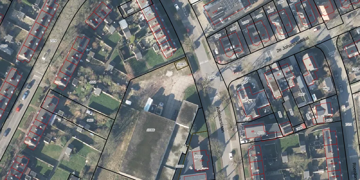 Het perceel waarop Adelaarslaan 22-9 staat heeft een oppervlakte van 2600 m². Dit is een zeer groot perceel. De perceeloppervlakte wordt geregistreerd door het Kadaster. Gedetailleerde informatie over de maten van dit perceel kunt u vinden in het rapport Kadastrale kaart met maatvoering van Adelaarslaan 22-9.