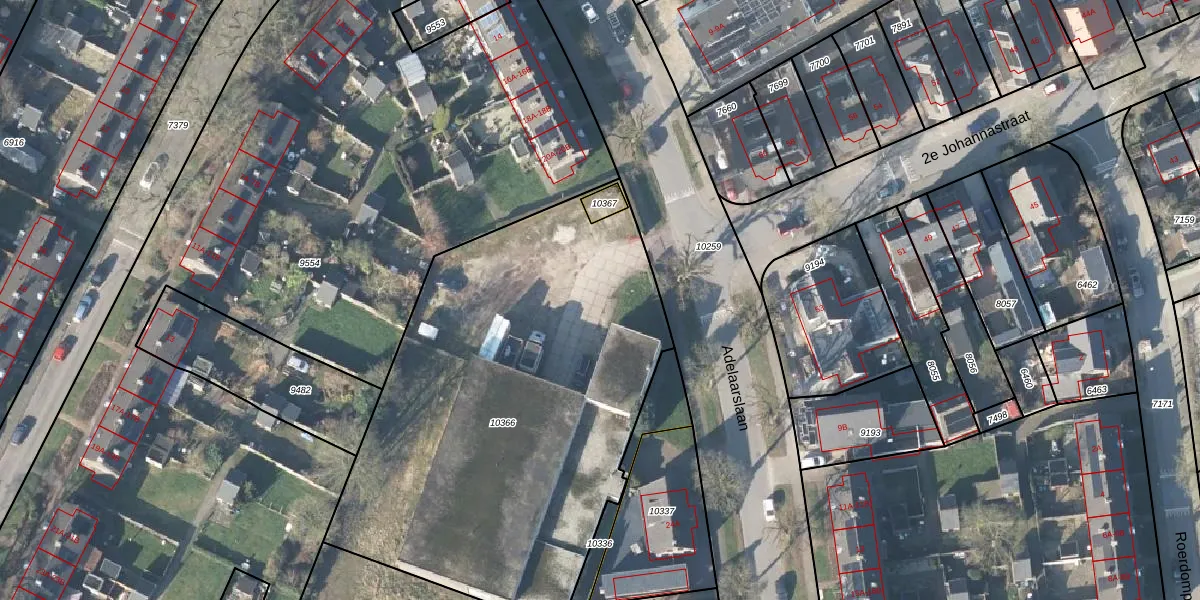 Het perceel waarop Adelaarslaan 22-18 staat heeft een oppervlakte van 2600 m². Dit is een zeer groot perceel. De perceeloppervlakte wordt geregistreerd door het Kadaster. Gedetailleerde informatie over de maten van dit perceel kunt u vinden in het rapport Kadastrale kaart met maatvoering van Adelaarslaan 22-18.