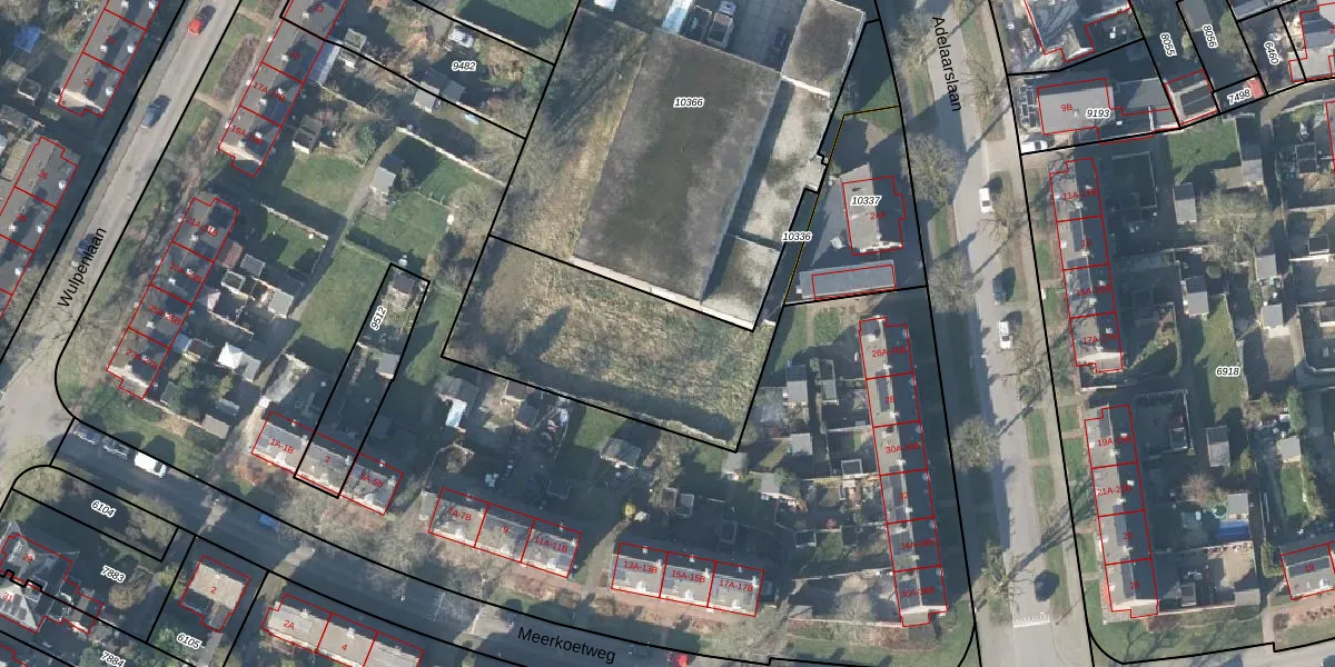 Het perceel waarop Adelaarslaan 22-30 staat heeft een oppervlakte van 1019 m². Dit is een zeer groot perceel. De perceeloppervlakte wordt geregistreerd door het Kadaster. Gedetailleerde informatie over de maten van dit perceel kunt u vinden in het rapport Kadastrale kaart met maatvoering van Adelaarslaan 22-30.