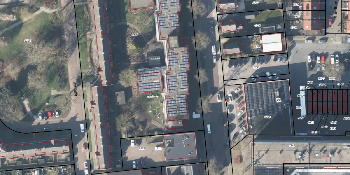 Het perceel waarop Adelaarslaan 80-A staat heeft een oppervlakte van 9863 m². Dit is een zeer groot perceel. De perceeloppervlakte wordt geregistreerd door het Kadaster. Gedetailleerde informatie over de maten van dit perceel kunt u vinden in het rapport Kadastrale kaart met maatvoering van Adelaarslaan 80-A.