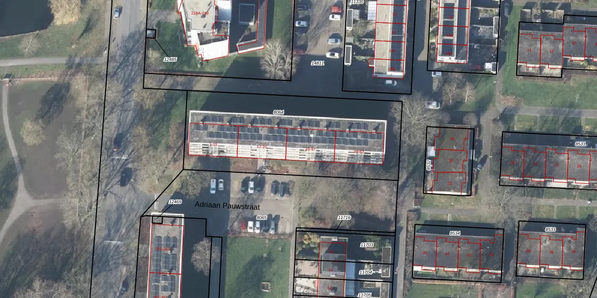 Het perceel waarop Adriaan Pauwstraat 39 staat heeft een oppervlakte van 1915 m². Dit is een zeer groot perceel. De perceeloppervlakte wordt geregistreerd door het Kadaster. Gedetailleerde informatie over de maten van dit perceel kunt u vinden in het rapport Kadastrale kaart met maatvoering van Adriaan Pauwstraat 39.