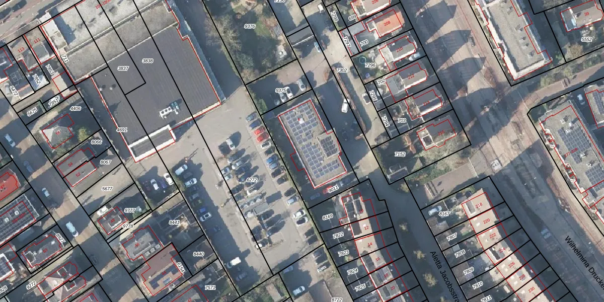 Het perceel waarop Aletta Jacobsstraat 8 staat heeft een oppervlakte van 677 m². Dit is een groot perceel. De perceeloppervlakte wordt geregistreerd door het Kadaster. Gedetailleerde informatie over de maten van dit perceel kunt u vinden in het rapport Kadastrale kaart met maatvoering van Aletta Jacobsstraat 8.