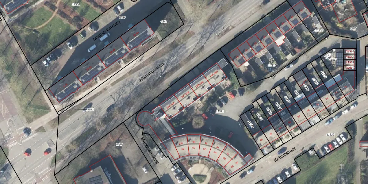 Het perceel waarop Aluminiumweg 16-B staat heeft een oppervlakte van 3487 m². Dit is een zeer groot perceel. De perceeloppervlakte wordt geregistreerd door het Kadaster. Gedetailleerde informatie over de maten van dit perceel kunt u vinden in het rapport Kadastrale kaart met maatvoering van Aluminiumweg 16-B.