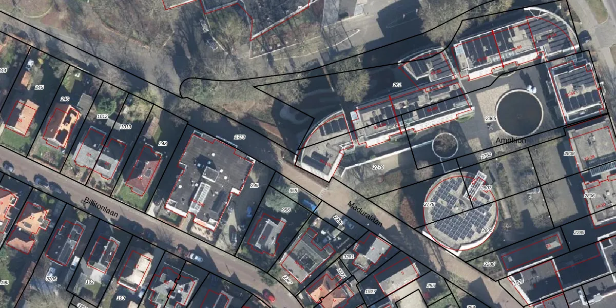 Het perceel waarop Amphion 106 staat heeft een oppervlakte van 1677 m². Dit is een zeer groot perceel. De perceeloppervlakte wordt geregistreerd door het Kadaster. Gedetailleerde informatie over de maten van dit perceel kunt u vinden in het rapport Kadastrale kaart met maatvoering van Amphion 106.