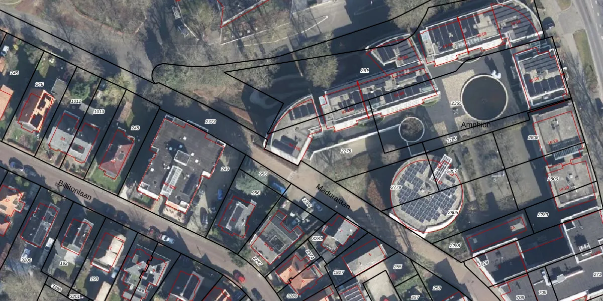 Het perceel waarop Amphion 94 staat heeft een oppervlakte van 1677 m². Dit is een zeer groot perceel. De perceeloppervlakte wordt geregistreerd door het Kadaster. Gedetailleerde informatie over de maten van dit perceel kunt u vinden in het rapport Kadastrale kaart met maatvoering van Amphion 94.