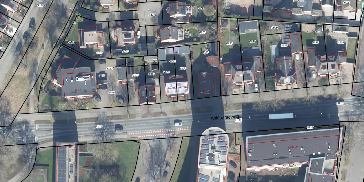 Anklaarseweg 21-H is gelegen op kadastraal perceel APD01AB5130. Deze kadastrale aanduiding is uniek en wordt gebruikt door het Kadaster om eigendomsrechten en andere zakelijke rechten vast te leggen. Het perceel maakt onderdeel uit van de kadastrale gemeente Apeldoorn.