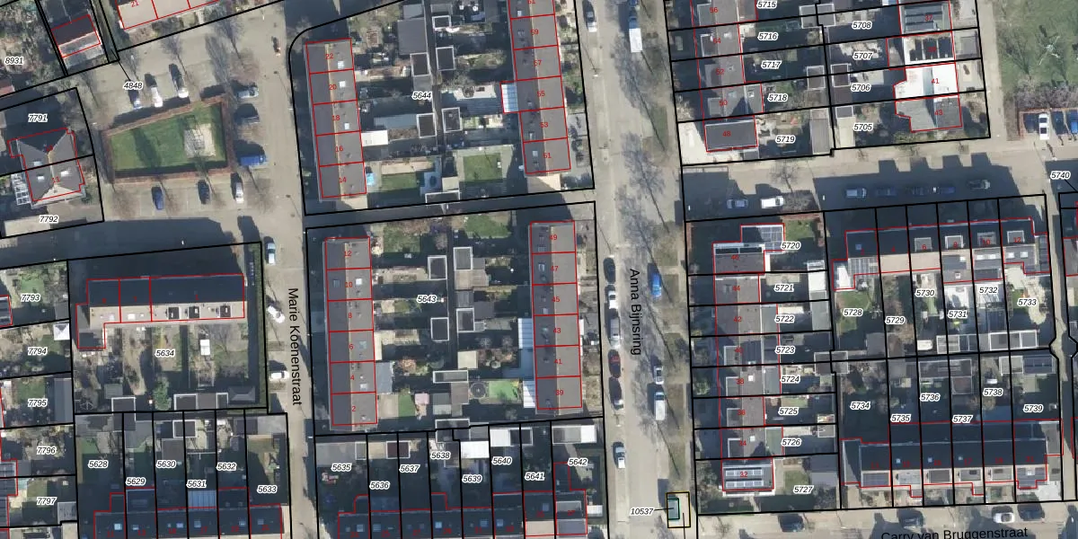 Het perceel waarop Anna Bijnsring 47 staat heeft een oppervlakte van 2116 m². Dit is een zeer groot perceel. De perceeloppervlakte wordt geregistreerd door het Kadaster. Gedetailleerde informatie over de maten van dit perceel kunt u vinden in het rapport Kadastrale kaart met maatvoering van Anna Bijnsring 47.