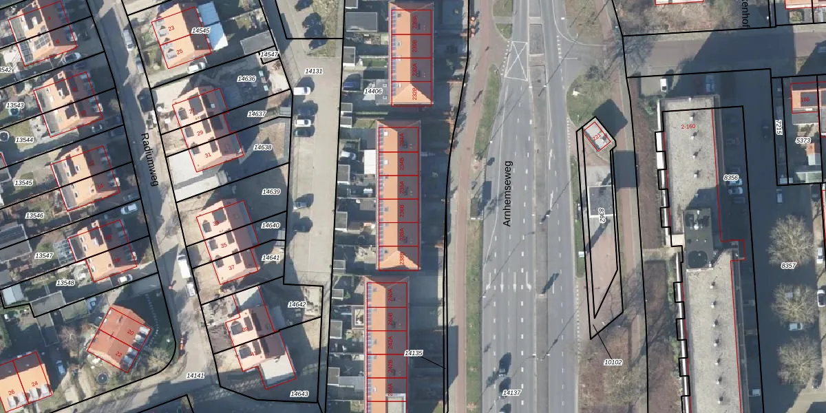 Arnhemseweg 236-B is gelegen op kadastraal perceel APD01L14406. Deze kadastrale aanduiding is uniek en wordt gebruikt door het Kadaster om eigendomsrechten en andere zakelijke rechten vast te leggen. Het perceel maakt onderdeel uit van de kadastrale gemeente Apeldoorn.