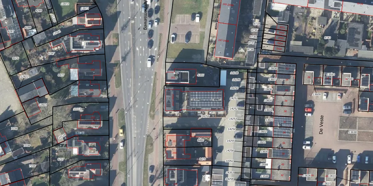 Het perceel waarop Arnhemseweg 255-C staat heeft een oppervlakte van 1409 m². Dit is een zeer groot perceel. De perceeloppervlakte wordt geregistreerd door het Kadaster. Gedetailleerde informatie over de maten van dit perceel kunt u vinden in het rapport Kadastrale kaart met maatvoering van Arnhemseweg 255-C.