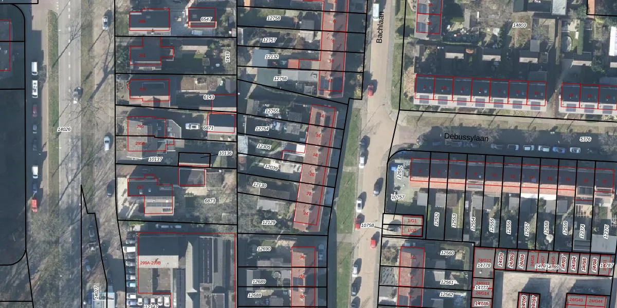 Het perceel waarop Bachlaan 18 staat heeft een oppervlakte van 213 m². Dit is een middelgroot perceel. De perceeloppervlakte wordt geregistreerd door het Kadaster. Gedetailleerde informatie over de maten van dit perceel kunt u vinden in het rapport Kadastrale kaart met maatvoering van Bachlaan 18.
