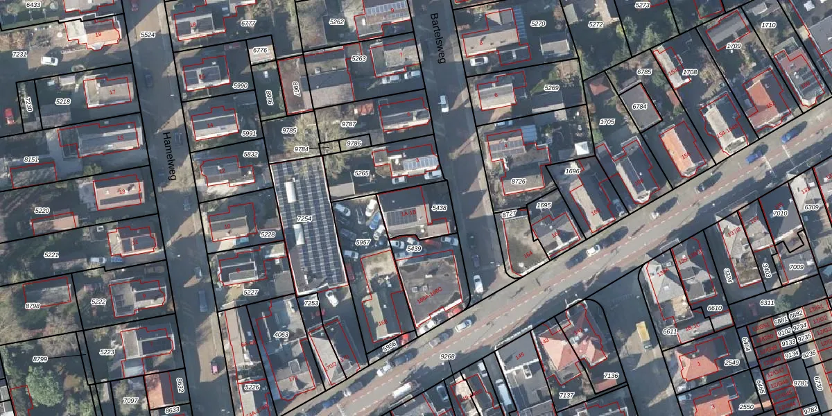 Het perceel waarop Bartelsweg 1-A staat heeft een oppervlakte van 205 m². Dit is een middelgroot perceel. De perceeloppervlakte wordt geregistreerd door het Kadaster. Gedetailleerde informatie over de maten van dit perceel kunt u vinden in het rapport Kadastrale kaart met maatvoering van Bartelsweg 1-A.