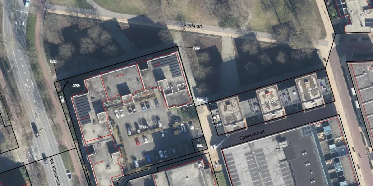 Het perceel waarop Beekpark 61 staat heeft een oppervlakte van 3845 m². Dit is een zeer groot perceel. De perceeloppervlakte wordt geregistreerd door het Kadaster. Gedetailleerde informatie over de maten van dit perceel kunt u vinden in het rapport Kadastrale kaart met maatvoering van Beekpark 61.
