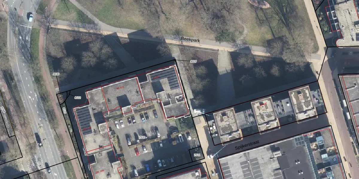 Het perceel waarop Beekpark 63 staat heeft een oppervlakte van 3845 m². Dit is een zeer groot perceel. De perceeloppervlakte wordt geregistreerd door het Kadaster. Gedetailleerde informatie over de maten van dit perceel kunt u vinden in het rapport Kadastrale kaart met maatvoering van Beekpark 63.