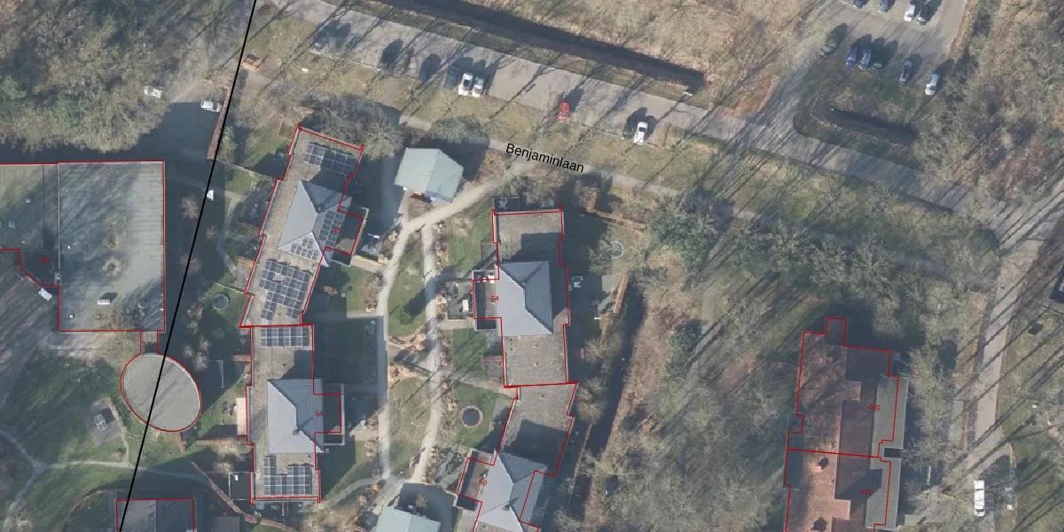 Het perceel waarop Benjaminlaan 64 staat heeft een oppervlakte van 27,9 ha. Dit is een zeer groot perceel. De perceeloppervlakte wordt geregistreerd door het Kadaster. Gedetailleerde informatie over de maten van dit perceel kunt u vinden in het rapport Kadastrale kaart met maatvoering van Benjaminlaan 64.