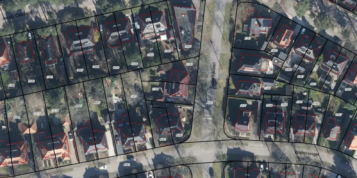 Gebruik de zoekbalk of klik op een perceel voor informatie over de adressen binnen dit perceel.