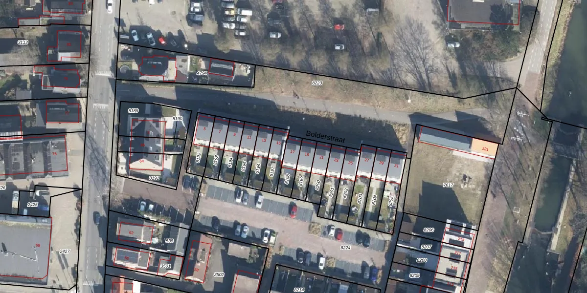 Bolderstraat 17 is gelegen op kadastraal perceel APD01Z8198. Deze kadastrale aanduiding is uniek en wordt gebruikt door het Kadaster om eigendomsrechten en andere zakelijke rechten vast te leggen. Het perceel maakt onderdeel uit van de kadastrale gemeente Apeldoorn.