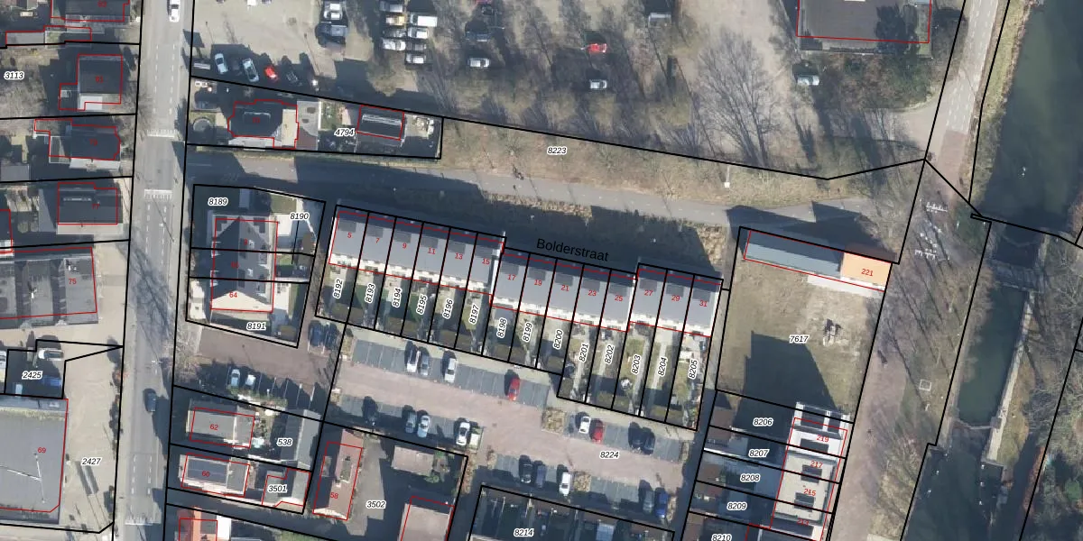 Het perceel waarop Bolderstraat 19 staat heeft een oppervlakte van 106 m². Dit is een middelgroot perceel. De perceeloppervlakte wordt geregistreerd door het Kadaster. Gedetailleerde informatie over de maten van dit perceel kunt u vinden in het rapport Kadastrale kaart met maatvoering van Bolderstraat 19.